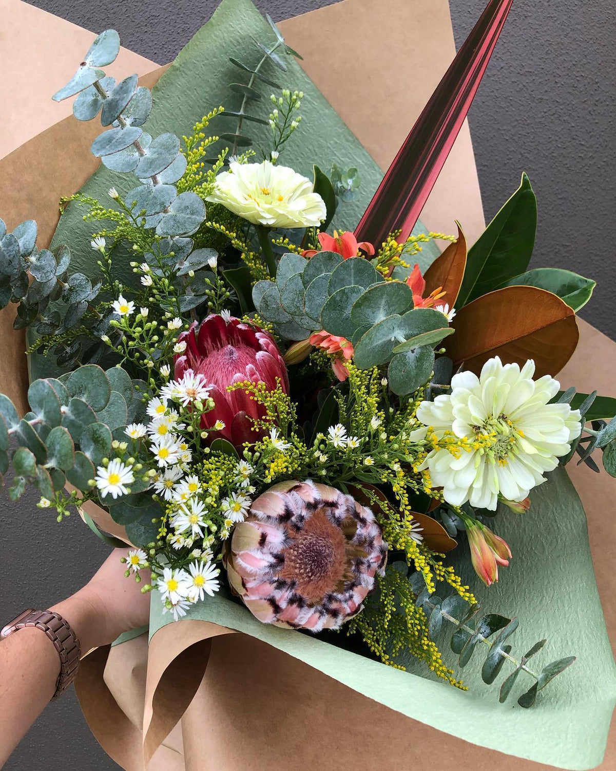 Our Wild Natives Bouquet is Back In Stock and we are SUPER excited to be supporting a small Beechmont grower of Proteas! Get in quick as these will sell out! 🌿🌿🌿 This Bouquet has 4 proteas, zinnias, Alstromeria, Eucalyptus Gum, Magnolia, Flax, Easter Daisies, and Golden Rod.