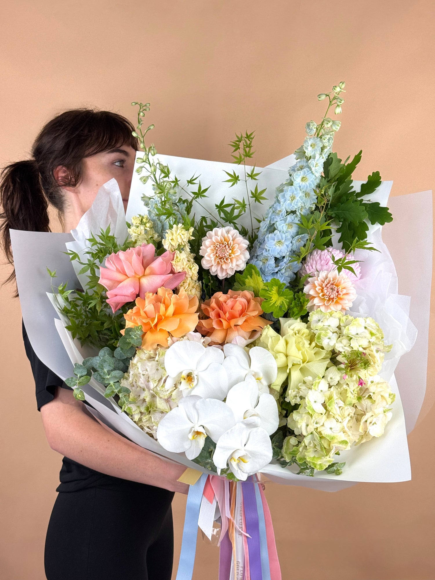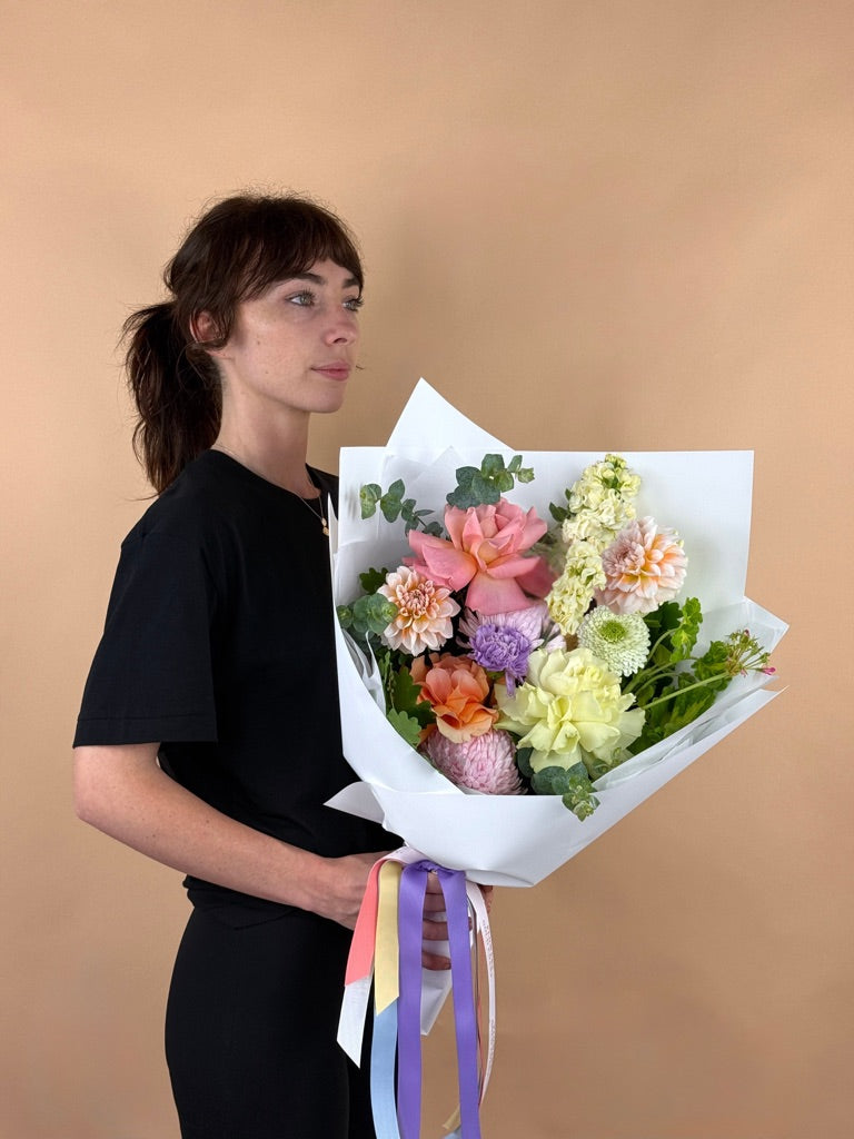 All of our photos are examples of our bouquets and should only be used as a visual guide. Colours, style and flowers will vary across bouquets.